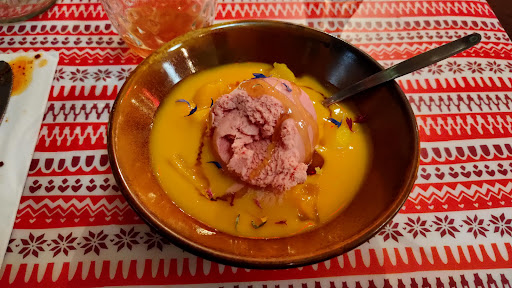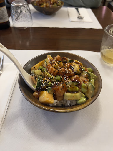 Das MenĂŒ (All-you-can-eat fĂŒr CHF 45.50 pro Person) begann mit einer Poke Bowl, die geschmacklich in Ordnung war. Danach folgten Beef-Momos, die allerdings offensichtlich in der Mikrowelle aufgewĂ€rmt waren. Das Fleisch war wĂ€ssrig, der Teig hart und lauwarm.