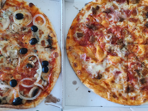 Entgegen den Rezensionen, die sich beschweren, die Pizza zu spät erhalten zu haben, muss ich sagen, kamen die Pizzas ziemlich schnell an. Der Fahrer machte einen freundlichen Eindruck.
