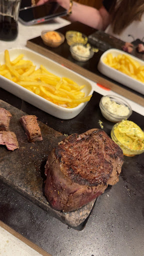 Dommage, vraiment dommage. En effet, la viande est vraiment de bonne qualité, peut-être les frites un peu dures, sinon, pour la qualité de la nourriture, rien à redire.Pour le reste, c’est pas pareil, heureusement que nous étions six et que parfois ça tournait à la rigolade. À l’apéro, le blanc non filtré, la bouteille n’avait pas été secouée. À la commande, pas de pommes de terre à l’eau, ça complique en cuisine ! Une personne aurait voulu que la cuisson se fasse directement en cuisine et non sur ardoise, également trop compliquée ! Au service du vin rouge, on nous demande si nous voulons garder nos verres d’eau, car ils sont un peu justes au niveau de la quantité de verres à vin rouge ! Au dessert, à la carte, plusieurs auraient voulu les fameuses tartes aux framboises, mais il n’en avait plus. Bon, on va prendre les tartes aux fraises, il n’en reste qu’une ! Bon, les autres choisissent la dernière option, tartes mûres. Non, ça fait un an qu’il n’y en a plus, mais c’est toujours à la carte…… Quand on commande les cafés à 22 H 30, là on a de la chance, en effet, c’était juste le moment pour commander les cafés, car c’était l’heure du nettoyage de la machine, ouf !Pas facile de résumer en...