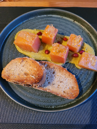 Read moreEn passant devant on n'a envie de s'arrêter car la devanture ne paye pas de mine. Une fois la porte franchis on est dans une petite salle à la décoration épurer. Il n'y a pas beaucoup de tables donc il faut s'y prendre rapidement. L'accueil est chaleureux par une personne dynamique. La carte est petites, 3 entrées, 3 plats mais elle est variée et les plats son recherchés. Dans l'assiette uniquement des produits frais et brillamment dressés et bien assaisonnés. Les desserts quand à eux sont petits et les prix adaptés à leur taille, ça passe mieux en fin de repas. Une belle découverte et bravo...
