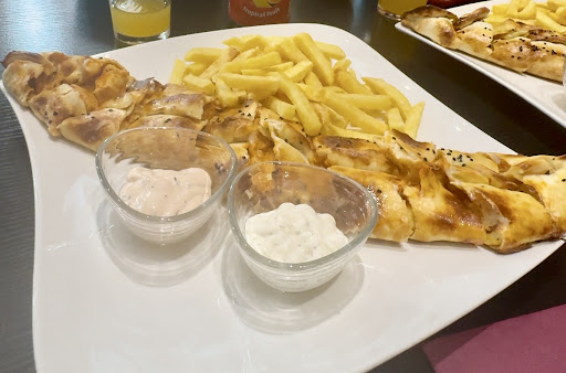 Read moreDéçus les 2. à deux en terrasse, une assiette a 25.- pr.mon ami. banale, viande hachée d'agneau? épicée, salade et frites moyen et manque le sel..et moi; une entrée samosa legumes avec 2 sauces, puis un Tacos falafelService moyen, un set de table pour l'assiette d'agneau à 25.- mais pas pour moi à 19.- ? Pas aimé le tacos de falafel rempli de frites, - c'est comme ça ici! (en suisse) qu'on m'a répondu... Ah. le cendrier sale pas enlevé, services pas essuiés. Inauguré il y a quelques jours, ils auraient pu aussi nettoyer le sol de l'entrée de la terrasse au Karcher. La circulation bruyante des autos du carrefour n'arrange pas les choses. S'improvise pas...