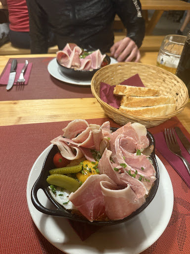 The only welcoming sight in there is the cow sign saying "welcome". We were told off for daring to ask the usual type of food in mountains shelters, "rosti". The woman was very verbally aggressive at us, while we were trying to be friendly. We are very flexible and ordered what they had. It was expensive for that type of place. Worse was man (the owner probably who said it's five years he is there). A guest made the mistake of tilting the empty pan on the table, the man came, complained and lecture the adult man about it in a very angry way. I checked after on trip advisor and I am not surprised they got bad reviews there too. A shame. Not worthy anyway, keep your money and enjoy a...