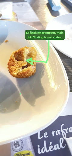 Read moreAmateurs de Malakoff passez votre chemin !!! Je me suis arrêté pour boire un bitter et ma femme qui m’a rejoint à voulut manger 4 Malakoffs et une petite assiette de viande séchée. J’en ai gouté une moitié, une odeur âpre qui vous prend au nez, gonflé d’air, gris vert de couleur. Je suis en colère d’avoir goûté cela qui est maintenant dans mon estomac et ma femme qui mange toujours trop vite ne c’est rendue compte de la chose qu’à la fin du premier. Elle est en train de vomir à la maison.