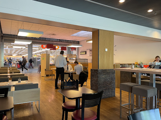 *We wanted to buy a quick lunch before heading to airport. Walked in, saw their display with sandwiches, salads, bagles, yogurt, fruit cups, etc... we waited for the 2 couples infront of us (10 minutes). We ordered 2 sandwiches, a salad and 3 drinks. After paying, was told we were not allowed to sit down... "only food from menue can be eaten there." WT__??? ME: Looking at menue "how long to make a salad?" Them:"10 to 15 minutes". The salad on menue looked just like the one in display and cost 3 times as much. Our 'drinks from menue' too 10 minutes to come. Sandwich "ordered from menue"= watched waitress take 2 sandwiches from display, unwrap, and place on plates. These also cost 3...
