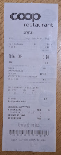 Das Menü wechselt jede Woche. Es gibt aber für jeden Geschmack etwas (Ausländische Küche, Schweizer Küche und viele Selbstbedienungsstationen). Die Köche scheinen während der Mittagszeit etwas im Stress zu sein, waren aber trotzdem freundlich.