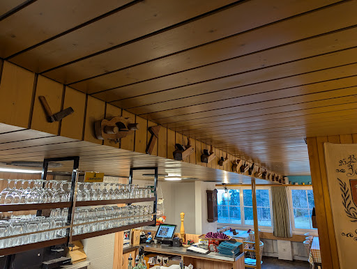 Read moreSchade,tolle Lage , super Aussicht....trotz bestem Wetter war es nicht machbar im wirklich schönem Biergarten zu Sitzen.Aber wenigstens im überdachten Aussensitzplatz.Nachdem wir die Tische selber zusammengestellt hatten und die Kinderstühle auch ,als Gast ,vom Restaurant geholt hatten bekamen wir auch schon unsere Speisekarte.Die Getränke waren schnell gewählt und wurden freundlich serviert.Beim Bestellen der Speisen war es nicht möglich statt des Gemüses zum Schnitzel Salat zu bekommen.Der Räuberteller ist wahrlich ein Räuber,man zahlt 5 Franken für einen Teller und Besteck....nein es ist nichts auf dem Teller,nein man kann ihn auch nicht mitnehmen....wir bestellten ihn nicht !Als das Essen kam und meine Tochter noch gerne Ketchup nachhaben wollte wurde sie darauf hingewiesen sie solle doch erstmal den gebrachten aufessen...nein sie ist nicht 5Jahre alt sondern über 30 und Mutter 3er Kinder.Sie traute sich dann nichtmal nachzubestellen als der Ketchup leer war.Das Essen war in Ordnung .Zum Schluss bestellten wir noch einen Kaffee nach Art des Hauses, die von mir gewünschten 2! Zuckertütchen kamen ohne wenn und aber,der Kaffee war super! Unsere Bedienung wäre ohne die Belehrungen nett...