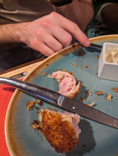 Nous commandons des cordon-bleus et des tartares de bœuf pour 6 personnes. Au moins 40 minutes plus tard, nous n’avions toujours pas notre nourriture sur table. Je me renseigne auprès du service qui est trop désolé et nous demande de nous patienter encore un peu. Finalement, nos plats arrivent mais nous devons constater que les frites sont froides, la salade baignée dans de la sauce, les tartares qui avaient pas vraiment de goût voire des traces de goût de poisson et les cordon-bleus desséchés.