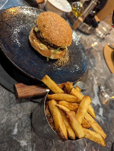 Read moreI went to this restaurant with fairly high expectations. Some of which were met, others less so. The big winner was the atmosphere. Nice and cozy, and not too loud, even though it was nearly full (a testament to the acoustic design). The service was fast and efficient when ordering drinks and food, but getting the check was something else. It took us over half an hour and multiple tries to get attention to finally get it, although there were up to 3 waiters in our area (sometime all three at the same table). Regarding the food, we ordered a Macka's Filet and a Wagyu Omi Gyu A5 Burger. The Macka's Filet was very tender, well cooked, grilled on the outside and red in the middle, very pleasing to eat, but the taste, although very good, did not differentiate itself from a traditional filet. The side dish was very small, making this meal overall lack luster in term of quantity. Same can be said for the burger, very tasty, but overall, small. I could see an improvement by proposing different size (quantity of meat) for the burger, because, unlike the other dishes, not much is given about it on the menu (e.g. nothing about the quantity of meat is said).
