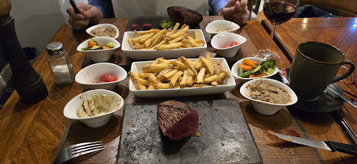 La viande était bonne mais le choix des sauces (fait debout avec nos manteaux) pas judicieux car le café de Paris est en fait une tranche congelée qui ne fond que si vous laissez votre viande cuire bien longtemps sur l'ardoise.. Adieu viande saignante!! Là , par contre, nous sommes restés avec nos ardoises vides une bonne demie-heure sans que se soit débarrassé. Je précise que c'était un lundi soir et que ce n'était franchement pas plein.