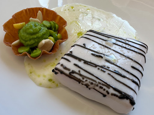 Out of three dishes forming the body of the menu (Chf 118.- each), two were served cold, which immediately set the tone. The main course—a chicken dish—was fine but completely unremarkable and oddly came with no side dish at all. Every plate, regardless of what we ordered, was paired with the exact same lamb’s lettuce salad, which quickly became repetitive.