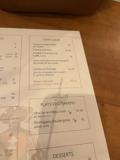 The atmosphere at this Swiss restaurant was underwhelming: rustic but lacking charm, with a chaotic and overcrowded bar and service area dominating the view from the central table. Half of our group enjoyed the fondue à la brisure de truffe noire, which was well-prepared but felt stingy on the truffle shavings. Additionally, the small bowl of potatoes was charged separately on top of the 34 CHF, which seemed excessive. The other half opted for the ravioli aux homard, where the lobster filling was fresh and flavorful, but the pasta dough felt industrial and bland, taking away from the overall enjoyment of the dish.
