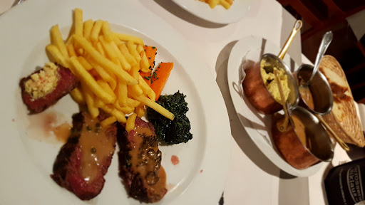 Read moreDécouverte grâce au Passeport Gourmand. Notre serveur n'a pas chômé et n'arrêtait pas de courir partout - c'était même un peu stressant -, mais il était d'une efficacité redoutable, très aimable malgré la pression qu'il semblait subir. Les tartare qu'il préparait aux tables voisines paraissaient absolument appétissants ! Ce sera pour une prochaine fois, promis ! Dommage que plusieurs plats proposés sur la carte n'aient pas été disponibles. Mais les filets de perche étaient parfaits, fondants et fins, les frites magnifiques. Les filets de cheval sur ardoise ont été une pure merveille ! Viande sublime, hyper tendre, très belle et très bonne, servie avec 4 sauces (3 délicieuses et 1 moins...), des légumes bien présentés, très simples et très bons, du riz blanc moelleux à souhait. Et pour couronner le tout, le café était un vrai beau café ! Bref, on s'est régalé !! En plus, les prix sont très corrects. On reviendra...