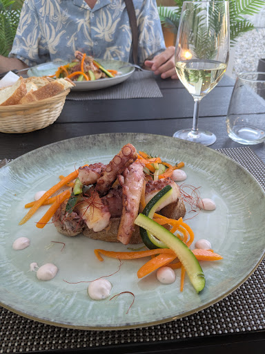 I liked this restaurant. Sitting outside on their terrace was nice and cool. The food was good, we had a plateau de charcuterie and tasty focaccia pour les entrée and octopus grillé for the main dish that was delicious ! It was succulent and soft , one of the best I have eaten ! It is the service that I didn't like, the waitress was not professional, she did not know to explain the sauce of the main dish and she was too coarse in speech and manners.I did certainly not like the way she talked to us when we asked information about wines . We couldn't have deserts as she said their freezer broke and they had to throw the...