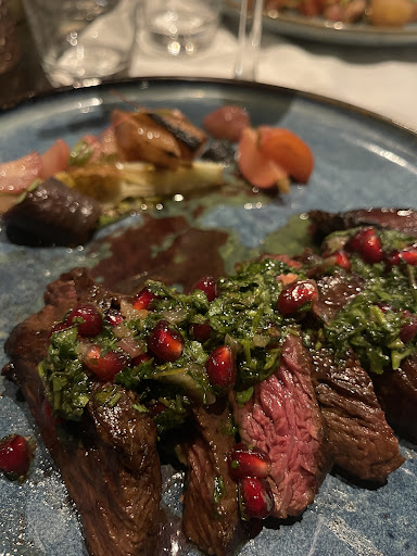 I tasted the beef with chimichurri sauce fries and vegetables . The meat was cooked medium rare and the result was splendid . In any case the menu offers a great variety of dishes.