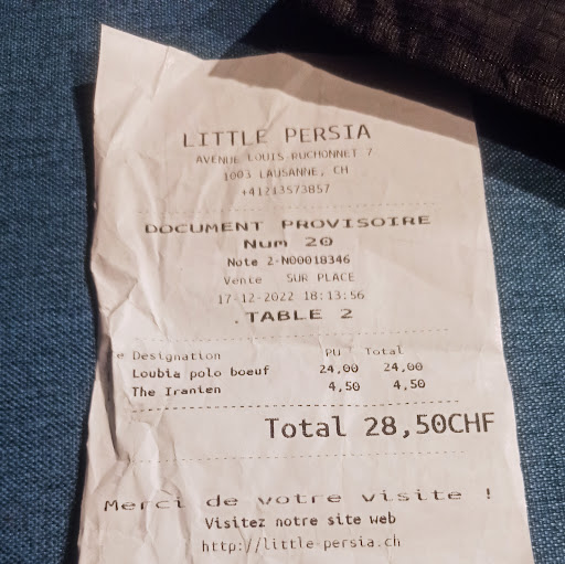 One of Lausanne's halal eateries. The staffs were very friendly and welcoming. The service was superb too. I ordered Loubia polo beef and mint green tea. That was not great but just ok. The beef shredded pieces were mixed in the rice, I thought the beef was served separately with some gravy but I was wrong. I think Loubia polo is a traditional Iranian/Persian dish and you eat it with yogurt and fresh cucumber slices. It's unique to me, however I felt that the rice was quite dry because they put rice on display at the counter and reheat them. Overall, nice ambience, good customer service and I would come again to...