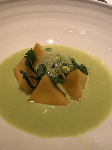 We did the tasting menu and wine pairing and everything was exceptional. We started with the tomato dish. Everything was fresh, and the burrata ice cream was a nice touch. Next were the vegetal berlingots, a mushroom dish that's a signature on all of Anne-Sophie Pic's menus. I can see why - it was a delicious bowl of umami with each component contributing to the complexity of the dish. For the next course, we really enjoyed the sole. A perfect piece of fish. Next up was the venison. It was well cooked and well executed. It also came with a tart of ground venison on the side. The cheese course was an interesting one, with one of the cheeses being served as a mousse. It was a nice play on a traditional cheese course. Finally, for dessert we had the chocolate and the white peach options. Both were a lovely way to finish the meal.
