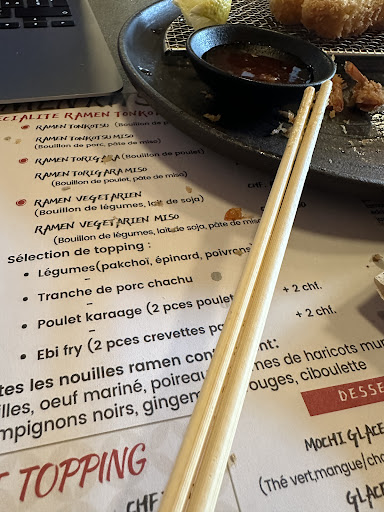 This is clearly a real Japanese place, not run by Chinese staff (as are 95% of places here). I got a take-away, which arrived in one container with the broth and another massive one with everything else. The broth was thick, meaty and complexe, something I hadn’t experience since my 7 japan visits, the last one in 2020. The broth was presented in a typically mindful and respectful (and therefor absurdly un-ecological way, as per the tradition of preserving the food to perfection as a mark of respect to the producer and the consumer. I’ll let you figure out how you feel about that ethical conundrum). The broth was thick and porky with perfectly unseparated miso. Understandably, it has been adjusted to western tastes, meaning it was salty, causing a big umami unbalance, but this makes sense in a land of cheese and kebabs, burgers and tacos. The second container had ramen (I would qualify as mid tier, apologies if it was home made. Certainly a million miles from generic cup ramen, the Chashu (melt in the mouth pork slice was delicious but clearly not Chashu, more like amazing brazed pork slice that was again, « culturally » salty). Im nitpicking here to be fair. It was bloody good. Then the onsen egg that was good but had been sadly obliterated when combining the two containers. The white was coloured and perfect, I cannot say for the yolk as it disappeared under a mountain of ramen. The rest were typical things such as pickled ginger, mushrooms etc. Another thing to be expected is the ludicrous amount of ramen vs the broth, as in western cultures this ratio of carbs is quite typical. It was impossible for me to finish but I savoured until I was done.