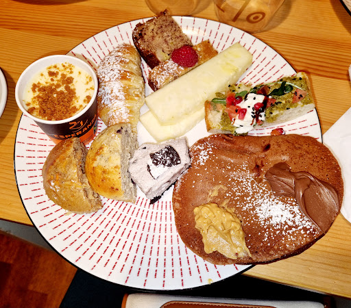 Read moreJ’attendais avec impatience de pouvoir enfin “bruncher” chez vous, mais j’ai été fortement déçue! À notre arrivée un cuisinier était enfermé à l’extérieur et toquais à la porte, puis nous sommes enfin rentrés dans la salle, bien accueillis nous avons dû patienter pour être installés, nous avions une table pour 3 réservé, mais la serveuse a dû déplacer des clientes pour nous placer à une table. Toutes les autres étaient formée en longues tablées pour groupes. Nous avons opté pour le brunch, mais finalement j’aurais du prendre un burger. J’ai été surprise de plusieurs points, les mets étaient posés dans des plats à gratins, aucun arrangement, les desserts mal coupés et les verrines de dessert étaient aussi dans les plats à gratins, ils semblaient vieux et pas fait maison. Le service des burgers à table était un plus et très bon. Finalement pour la cuisine je trouve qu’il y a peu de choix. Je reste choquée de voir un cuisinier, avec un simple tablier, vêtu d’un jogging et d’une paire de NB.