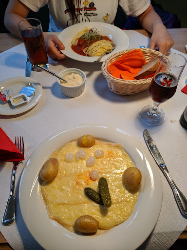 We were a party of 3 persons on a Saturday evening, and ordered the cheese fondue. The glasses of wine were 5-6CHF and the fondue was 25CHF per person (which is relatively standard for Switzerland fondue). We ordered some boiled potatoes with the bread for the fondue, but the potatoes were not completely cooked. The bread for the fondue also did not taste fresh.