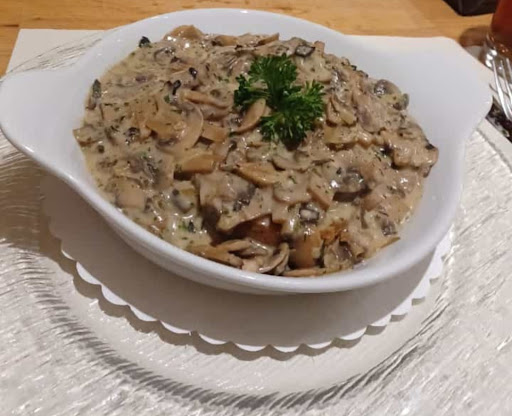 ♡ La croûte aux champignons de Paris frais et le Röstis maison et la paire de saucisses fumées était excellent,