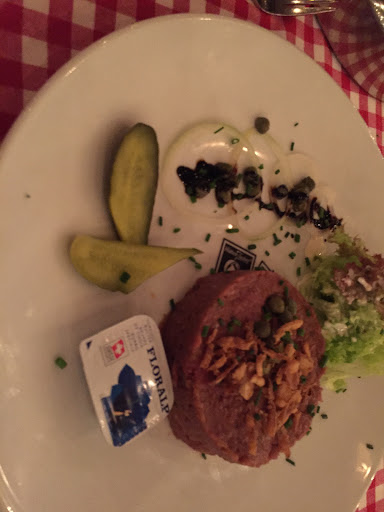 A nice little gem in the heart of town. I went for lunch with a friend on a sleepy Sunday. Not sleepy in the restaurant, though. Quite a few patrons. If calf liver (kalbleberli) is on the menu, I'll usually order it. I resist sometimes because it's a popular dish in Switzerland, and it is heavy on the calories. ;) However, when well prepared, it's the nicest Swiss meal on a menu (IMHO). Hirschen is no exception... Tender strips of liver in a butter pepper sauce accompanied by a generous portion of rösti. Make sure you get a salad to make it a little healthier ;) Looking over at the table next to us, we found that 2 of the 4 clients had also ordered it. Always a good sign!