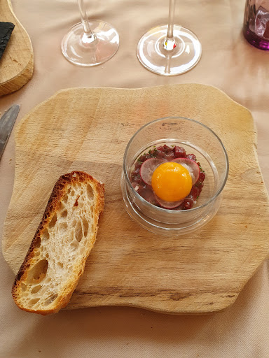 Read moreTrès bon accueil nouveaux propriétaires accueillants, souriants et professionnels. C'est un couple de jeunes qui se lancent, la cuisine et moderne avec des subtilités de gouts et de mariage de saveurs. On sent un jeune chef qui a envie de bien faire et qui se cherchent encore sur certains plats, je suis certain que ça va se développer et que les saveurs vont s'affiner puis prendre du coffre. Le chef doit travailler encore sur la présentation des plats et en améliorant le visuel et le détail de ses assiettes. En ce qui concerne la salle elle mérite encore un peu de déco et de petits détails qui font la différence sur les tables. Une jeune patronne qui travaille aussi beaucoup la fidélisation et la confiance en effet son appareil de carte bancaire ne fonctionnait pas elle nous a laissé partir pour revenir payer plus tard un geste commerçant sans égale bravo très bonne continuation. Me re-voici quelques temps plus tard après déjà 4 fois, beaucoup de choses se sont améliorés visuellement, cependant la cuisine et à mon goût trop complexe parfois plus de simplicité permettrait une remontée des saveurs plus affirmé. Attention ⚠️ la cuisson des légumes beaucoup trop croquant, 3t sur le dessert de pâques c'est trop brouillon. La carré des vins et beaucoup plus large mais laisse un choix unique. Il faut y aller goûter et vous faire votre propre idée le tarif est...