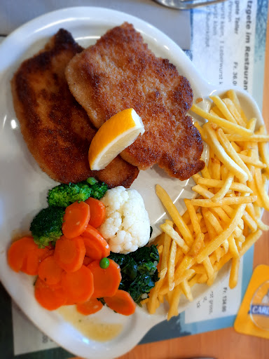 Read moreEin schön gelegenes Restaurant mit einer grossen Anzahl an Parkplätzen. Der Speisebereich war eher kühl und schlicht eingerichtet, was uns zuerst eher negativ rüberkam. Die Aussicht in die wunderschöne Landschaft war hingegen der Burner und liess das Ganze als solches wieder positiv erscheinen. Ein Wermutstropfen könnte der Spielbereich für Kinder sein, denn dieser ist mitten im Restaurant platziert. Das Personal war sehr freundlich und hilfsbereit. Uns hat auch deren Kleidung sehr gut gefallen. Die Speisekarte ist sehr grosszügig und beinhaltet einige interessante Möglichkeiten. Ein wahres Paradies für...