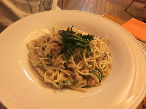 Nous sommes allés moi et mon amie pour manger à 12h00 la salle était très peu remplie 4 tables de 4 personnes peut-être un lundi l'accueil était médiocre nous n'avons pas été placé et personne ne nous a demandé si nous voulions manger où simplement boire un verre.