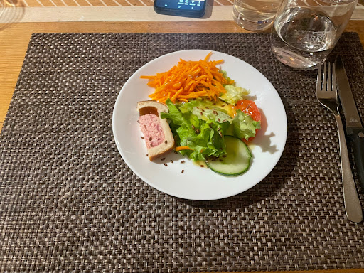 5 minutos antes de que me trajeran el plato de comida, escuchamos un cristal romperse, probablemente un vaso. Cuando me trajeron mi plato de ensalada, en mi primer bocado, note algo duro en la boca y, para mi sorpresa, era un trozo de cristal. Estas personas desconsideradas (por llamarlas de alguna manera) no fueron capaces de tirar los platos de comida que estaban alrededor del vaso roto. Asi que, por favor, no vayan a este restaurante, no se...