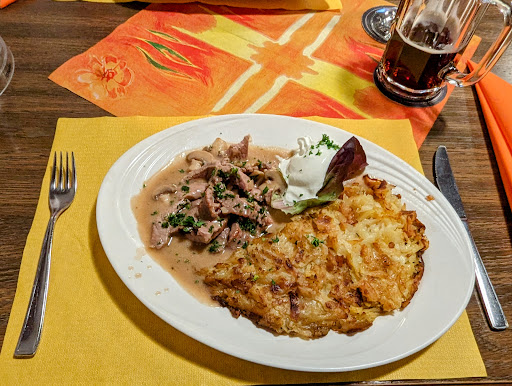 Wir waren zu zweit und bestellten Kalbsleberli mit Ruschti. Die Kellnerin brachte uns zürcher geschnetzel, wir sagten ihr, dass das nicht das sei, was wir bestellt hatten. Nachdem wir darauf bestanden hatten, sagte sie uns, ich könne es ändern, aber Sie müssten eine halbe Stunde warten, und trotzdem wurden alle bedient. Das war nur eine Ausrede, um uns zu entmutigen. Es gab Karten an der Bar, die nicht aktuell waren. Als wir sie fragten, ob wir bezahlen wollen, ignorierte die Kellnerin uns und setzte sich zu den anderen Gästen. Das Restaurant ist gemütlich, das Essen ist nur durchschnittlich und der Service lässt zu wünschen übrig.