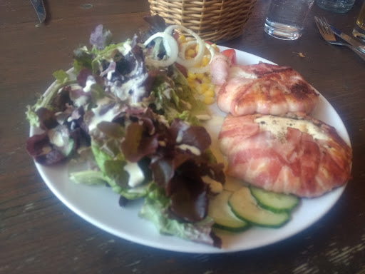A very nice family restaurant in Park Jura Vaudois. Seating indoor and outdoor. Lots of fondue on the menu as well as pasta and tomme cheese wrapped in bacon (pictured). Mostly ice-cream for desert as well as a gateaux of the day. Local beer and wine. A small playground for kids. The flies are a little annoying, but it's the countryside. The farms cows and chickens didn't...