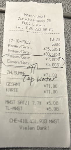 Read moreThey charge tap water for 5 per cup / 7 per bottle from the sink!!! I and my daughter had a half cup of sink water and paid $12!!