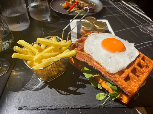 Read moreAhhh! Incredible experience. I’ll start by saying the service was extremely friendly and personable. After a day of walking around in the rain, it was nice to be in a cozy, welcoming location. We’ve been in europe for 3 weeks and were really craving a burger. The wagyu burger did the job and then some. The meat was incredibly juicy and tasty and the fluffy brioche bun had me questioning why any other bread would ever be used in a burger. My husband got the onion rings and I the sweet potato fries, both great but the three homemade sauces they came with were the stars: garlic mayo, bacon bbq, and watermelon sauce. Wowwww! Had to order a second round of sauces and those got cleaned out as well. We didn’t want the burger experience to end and considered splitting a third burger for dessert, but in the end, we went with an additional round of drinks including a dessert cocktail recommended by Flo (SOO good, I wish I remembered what it was called but I was already a couple old fashions deep) and the banana ice cream brownie with a marshmallow fluff top which was torched at the table. All in all, this was a fantastic experience. In fact, one of our favorite spots this trip. From service to ambiance to flavor, this place really had it all. Don’t...