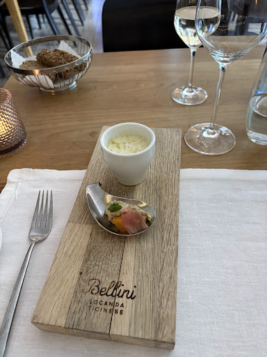 Now let's get to the food (and wine!) Okay, you are in for a real treat if you dine here, because the flavors are on-point! We loved everything we tried, and stealing glances at other folks tables we wish we could have tried even more of the fabulous offerings on their menu. This is food authentic to the Italian bordering region of Switzerland, and that is where the wonderful wine comes from as well. If you have never tried a white Merlot before, then this is the...