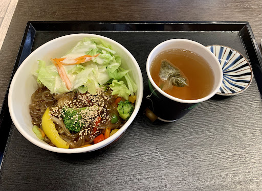 Read moreI ordered Chicken Katzu Curry. The meat was very good and the food was very hot - positives end there. There is no more than a drizzle of curry sauce but the biggest shocker is the use of basmati rice instead of sushi rice! The decorations hint at authenticity which this place completely lacks. My friends also ordered ramen and udon - both tasted like they were just made from a pack of instant noodles. Ramen was also unexpectedly spicy - not what I would expect. At least ramen had some flavour as udon tastes just like salted water. My girlfriend ordered a Jepcha Gyoza brawl. The sweet potato noodles were really good but you only get a few pieces of broccoli and 2 gyozas with it. Overall, I can sum up the food here as overpriced...