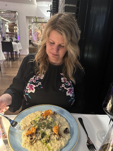 Read more4.5âŚ. An elegant restaurant overlooking the beautiful Luceirn Lake. The waiter was a Slovenian native, who took us in with a great big smile after we were rejected by a restaurant down the street that didnât even look that busy. Granted, we did not have a reservation, but there were tons of tables open, there. đŠ The gentlemen offered to take our coats right away, And we took him up on the offer since we were pretty wet from some heavy rain. We ordered the cheese plate, which was authentic Swiss cheese and excellent. Our meals were the Osso Bucco, (love saying that), and the Mushroom Risotto Rice- both very tasty, authentically prepared, and with smooth consistency. I was reticent to order the braised meal, which was the OSSO, but I was very pleased. It was a portion of beef shank that was excellently seasoned. My wife loved her creamy risotto. No dessert just a creamy coffee. The price was a little hefty, but we did get a $65 bottle of Elias wine, which is from the local winery. High marks for atmosphere, view, waiter,...