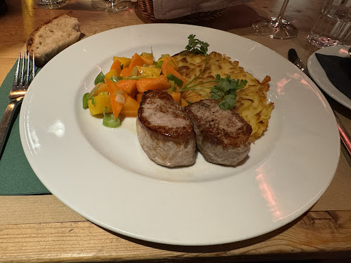 Found this place in an effort to find great food with a willingness to try different parts of Lucerne. I LOVE that this restaurant keeps a very limited menu (for lunch, there are 2 mains that are always offered and 2 that rotate - 1 with an animal protein and 1 vegetarian) - quality was top notch. We had the Saltimbocca over a bed of risotto and the antipasti platter since they had sold out of a pork special of the day - both were great. For our 2 kids that were in tow, we shared the generous portions with them and ordered a pasta with red sauce. It was quite cute that they came out with kids plates with fun designs on them. The post-lunch coffee was also a highlight - flat white, mocha, cappuccino this is your place. All in all, a true neighborhood gem, worth the 10 min to get outside of the tourist...