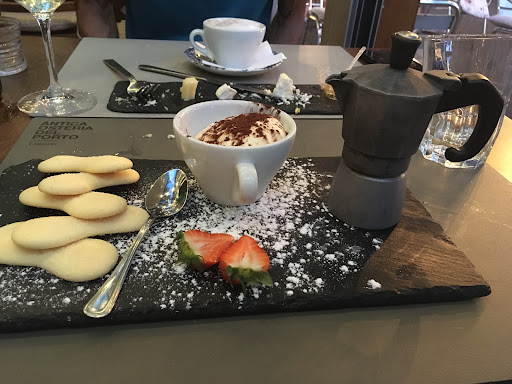 Read moreA nice place to come upon after spending time dangling your toes in the Cassarate River on a hot day. It was around 8:00 and the place was very lively. Without a reservation we had to sit inside instead of on the terrace, but we were seated by an open patio door, so close to the terrace we may as well have been on it. The place has a modern artistic vibe. Even the water glasses are individual. One was a normal drinking glass that had been reheated in a kiln and remelted so it looked a little bit drunk. The food tastes great, is artistically plated, and reasonably (for Switzerland) priced. We had burrata pasta, with an excellent tomato sauce; risotto with little octopuses and chili, with the chili not overpowering but complementary to the other ingredients; the fish (lake pike) and chips with a light crunchy batter; and an interesting assortment of cheeses. For dessert, most notable was the build it yourself tiramisu. Mix the coffee, lady fingers and mascarpone as you wish. Lots of fun! The service...