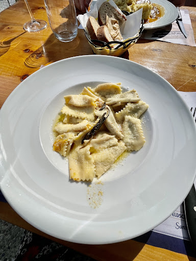 First, the food was outstanding. I had what One may call a religious experience with the ravioli. There were multiple flavors to choose from. I had one that had what I think was sweet potato/sage/butter. It was heavenly. My husband had an excellent beef dish with risotto. Great portion size for a hungry man. I am sorry I donât have a picture! We were just so in the moment and happy with how delicious the food was that I forgot. We also had the the tiramisu for dessert. my lord the creamy mascarpone with coffee was the perfect combo. Finished by having my first limoncello. Then, to top that off we got some croissants to go as parting gift from the owner. So so sweet ! We couldnât eat them that day we had them the next day and they were so fresh and yummy even a day later!