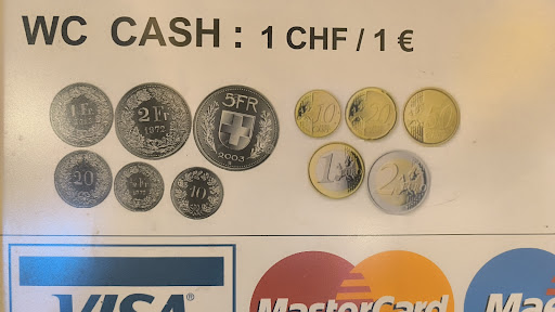 Read moreUna pésima experiencia. Voy al baño y cuesta 1€ o 1 CHF. Tengo justo el euro pero no me admiten monedas de 5 céntimos. Y pido en la caja del local contiguo que por favor me lo cambien y no lo aceptan indicándome que si tengo de 2€ me devuelven el otro. Lo introduzco y me devuelven 1 CHF que no usaré porque voy de paso y por lo tanto me cuesta 2€ usar el baño donde por cierto el recibo figura 0,50 céntimos. Voy a MacDonals pago con un billete de 50€ dos menús básicos con unos nuggets y me devuelven 5,8 CHF porque me aplican un cambio de 37,70 francos igual a 43,69€, además de varios conceptos que prefiero pagar y no salir enfadado. Todo un record de carestía y abuso del cambio que en el WC era el mismo importe. Mejor no sigo escribiendo pero ojo con los precios que es mejor pagar...