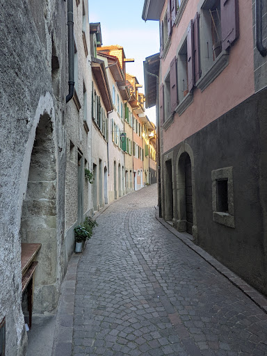 the place is on the old windy paths in the old town of lutry. Very cute and keeps cool in summer.
