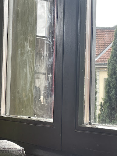 Treppe voller Pommes frites.... Ich gehe am Stock aufgrund einer gehbehinderung. Gefahr auszurutschen.... Im EG hat's Kids die mit dem kickboard und Restaurant fahren.