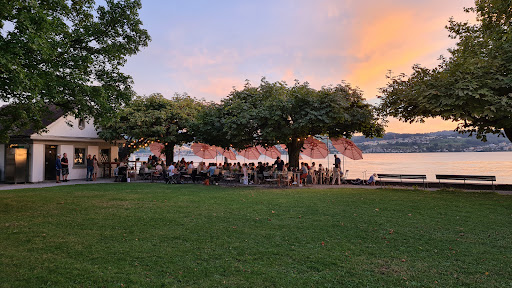 the location is superb, so that's what you'll be paying for here. the service is ok, friendly enough for the Canton of Zurich. the food is just alright. nothing to write home about. absolutely & utterly too expensive and the portions are way too small. if you want to pay 35 francs for a burger and fries, go across the road to Big Burger, do takeaway and sit on a bench by the lake for the view. These are also horrendously expensive but at least they're really BIG and very tasty. That's THE best burger place to go around here. while at Schiffstation, you'll get mediocre to good food on a tiny plate and they don't even offer ice coffee in the heat of the summer (neither the version with vanilla ice cream, nor the one with just ice). I wonder why not? after all, they have ice and they serve coffee - surely it cannot be that hard to combine the two? The only thing I was offered on a hot summer day was a coffee flavored ice cream (tiny little pot for a lot of money too).