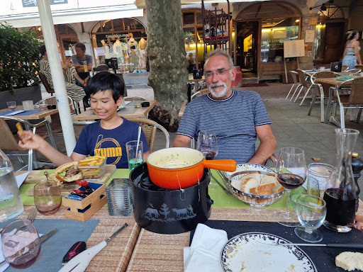 This place was great! We stopped here for dinner on our way back from Chamonix after going up to see the alps. The food was amazing and the atmosphere was laid back and relaxing; a nice change of pace after a long day in the mountains. The staff was super helpful and friendly too! Maria, the owner's wife, took the time to sit down and chat with us because we're from out of the country. She ended up buying us all drinks and made us feel more than welcome far away from home, which can be hard to come by. 12/10 will be sure to stop in if we're ever back...
