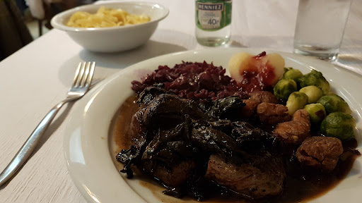 Nous Ă©tions 12 personnes et avions pris des salades et terrines en entrĂ©e, suivi dâune fondue bacchus. Une personne du groupe ne mangeant pas de porc, elle a demandĂ© Ă se faire servir la salade sans la terrine, suite Ă quoi le serveur a commencĂ© Ă se plaindre quâil aurait fallu avertir avant, que le restaurant Ă©tait plein (il ne lâĂ©tait pas)⊠Sâen suivent des soupirs, des secousses de tĂȘte et un agacement complĂštement dĂ©placĂ© et malvenu du serveur. Arrive ensuite la fondue bacchus avec du cerf, du bĆuf et du sanglier, Ă la place du poulain, dinde et bĆuf indiquĂ© sur la carte du site internet. Personne ne nous avait averti de ce changement. Dans tous les cas cela nâarrangeait pas la personne qui ne mangeait pas de porc. Nous avions donc demandĂ© une assiette sĂ©parĂ©e pour la personne concernĂ©e avec seulement bĆuf et cerf, suite Ă quoi le patron nous amĂšne lâassiette demandĂ©e en disant (littĂ©ralement et je nâexagĂšre pas) : « Il est oĂč le pĂ©nible ? » Inutile de vous dire que câĂ©tait la goutte dâeau qui a fait dĂ©border le vase. Traiter un client de "pĂ©nible", câest inexcusable ! Suite Ă cet incident, on aurait peut-ĂȘtre pu nous offrir les cafĂ©s... mais non, mĂȘme pas. Donc non, je ne retournerai plus jamais dans cet Ă©tablissement et mes 11 collĂšgues en feront...