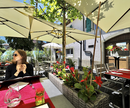 We stopped for lunch at this modest hotel-restaurant in the sleepy village of Mathod on our way home from Yverdon via Orbe. The restaurant has ambitions, as shown by serving you an amuse-bouche as a free starter and an excellent home made piece of chocolate with your coffee. There is a decent choice of meat, fish, poultry, vegetarian dishes and local wines; Olivia chose tofu with morels and black rice. I opted for an entrecôte ordered blue but served medium rare. Service was rapid and pleasant and we ate on the terrace, overlooking the...
