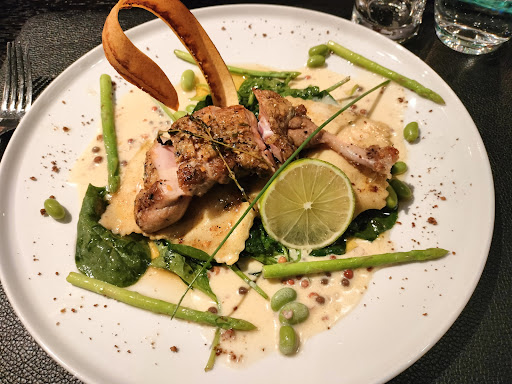 The food, however, was excellent. We shared a duck liver served with mango and wasabi gelato, which was absolutely divine. My main dish, pintade served with ravioli, baby spinach, peas, lemon, and tomato confit, was very well executed. A pure delight. We’ll certainly be back next time...