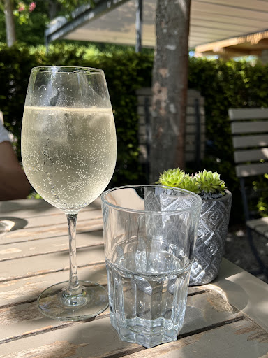 We stopped in on a lovely sunny day to grab a light meal and get hydrated before heading back on the road at the beach Restaurant at Seerose. The views, location and the food was great. we had the fisch knusperli and everything was seasoned really good. The waiter was okay but we asked for the bill because we had a deadline and he seemed to forget then vanished for a long time. We went to the front to pay. I was shocked by the bill and asked if he perhaps added something by mistake... it was the water ..7.40 for water 😂 😂 15 fr. for two ... we could have enjoyed an aperitive. I hope this water is comes from the fountain of youth and that tomorrow my wrinkles from the shock will be gone... next time we will come by bike and...