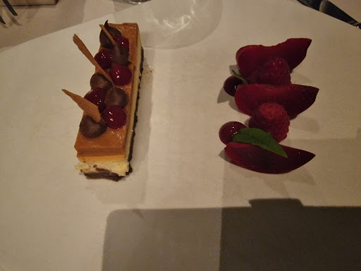 Das Essen war gut, wenn aber auch nicht wirklich herzlich. Beim Schweinebauch hatte man den Eindruck, dass es sich um einen Gruss aus der KĂŒche handelt, da die Portion derart klein war. Beim Hummer sind wir uns nicht einmal sicher, ob wir ĂŒberhaupt eine ganze Schere erhalten haben. Darunter zwei Pak Choi BlĂ€tter und etwas Curry Schaum. Leider ziemlich lieblos dafĂŒr, dass es sich doch um ein stattliches Tier handeln wĂŒrde. Beim Filet erhielt man ein halbes StĂŒck Fleisch und daneben RĂŒben & Pastinaken Terrine. Dass man Nachschlag erhalten kann, wurde uns erst beim 5. Gang gesagt.