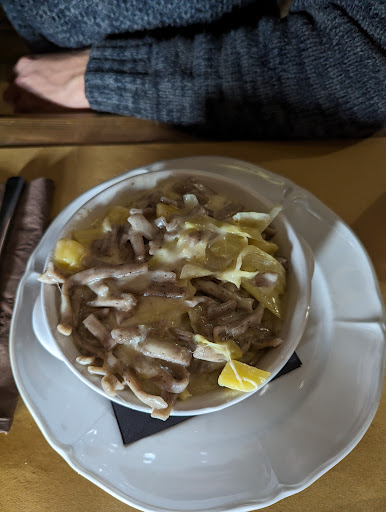 Read moreSiamo stati in questo ristorante ricavato da una ex stalla, immerso in un bellissimo contesto montano. L’ambiente è davvero suggestivo, curato e con un panorama che merita la camminata di 5 minuti in salita dal parcheggio (niente di impossibile, anzi fa parte dell’esperienza). A gestire il locale sembrano essere più persone, tra cui due Marito e Moglie che ci hanno accolto con molta gentilezza e disponibilità. Non è per fare commenti fuori luogo, ma colpisce un po’ in modo curioso, non negativo vedere persone palesemente del Sud Italia alla guida di un locale così tipico in alta montagna Svizzera. Detto questo, sono stati cordiali, simpatici e ci hanno fatto sentire ben accolti. Il cibo è buono, ben preparato e a detta loro tutto fatto in casa, compresi i salumi, il che è sicuramente un valore aggiunto. Tuttavia, i prezzi sono un po’ sopra la media, soprattutto per quanto riguarda i vini e i dolci. Un esempio: una bottiglia di Hugues Godmé Extra Brut, Champagne di buona qualità ma che sul mercato si trova a 32.44 CHF, viene proposta nel locale a 105 CHF. Si tratta di un ricarico del 223,8%, decisamente eccessivo anche considerando i normali margini della ristorazione. Anche la fetta di torta fatta in casa a 8 franchi ci è sembrata cara. Nel complesso però l’esperienza è stata positiva: ottimo contesto, cibo gustoso e genuino, personale gentile. Qualche riserva sui prezzi, ma sicuramente un posto dove tornerei e che mi sento di...